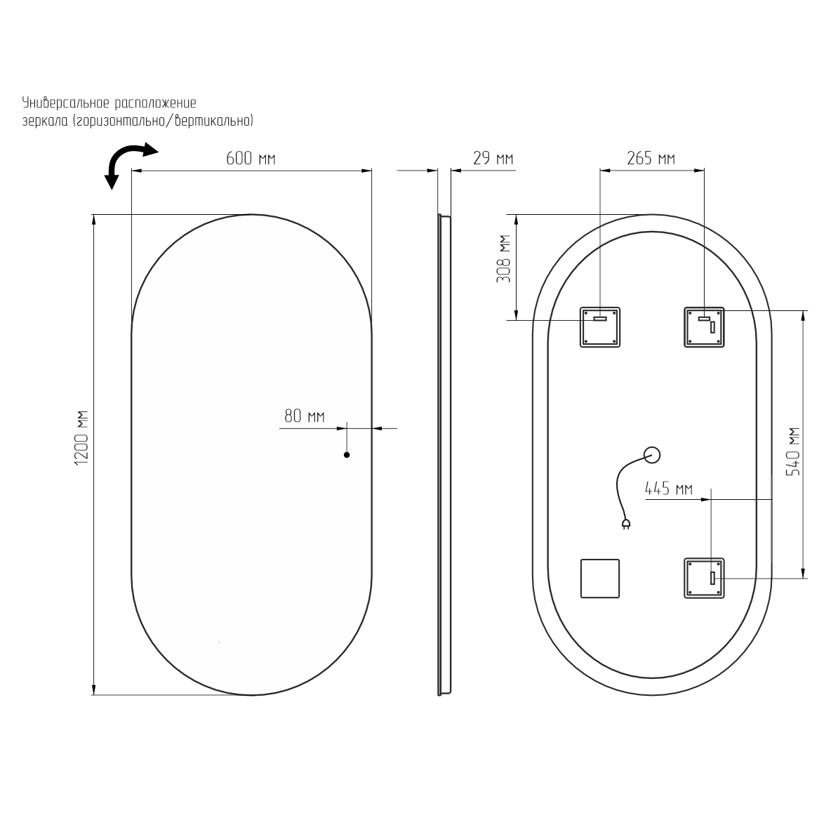 Зеркало с подсветкой AVS Гарда 60x120 см, ИК-датчик